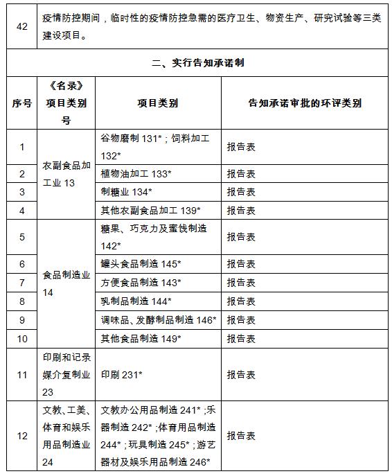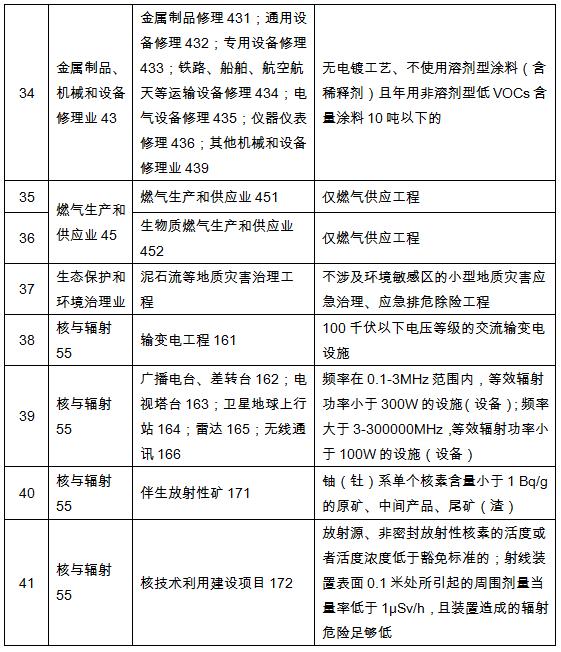 二、擴大環(huán)評豁免告知承諾范圍。進一步擴大對生態(tài)環(huán)境影響總體不大、與民生密切相關、社會事業(yè)與服務業(yè)等部分行業(yè)項目實行環(huán)評豁免或告知承諾制的范圍,具體的暫行實施范圍見附件。(牽頭處室:環(huán)評處、輻射處)