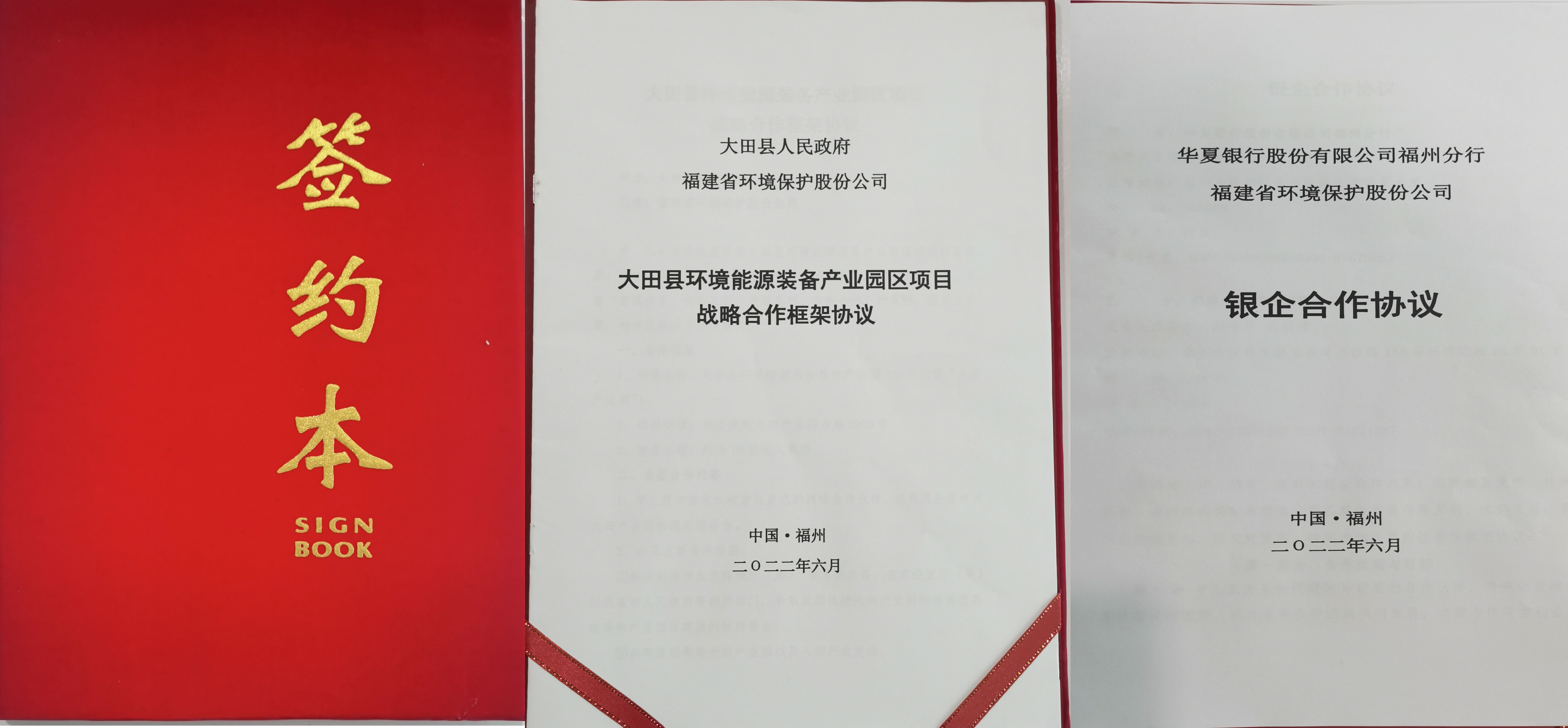 2022年6月19日上午,在福州市海峽國際會展中心福建省生態(tài)環(huán)境項(xiàng)目成果發(fā)布會現(xiàn)場,福建省環(huán)境保護(hù)股份公司分別與大田縣人民政府、華夏銀行股份有限公司福州分行簽署了戰(zhàn)略合作協(xié)議。