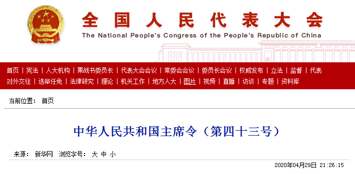 《中華人民共和國固體廢物污染環(huán)境防治法》已由中華人民共和國第十三屆全國人民代表大會常務(wù)委員會第十七次會議于2020年4月29日修訂通過,現(xiàn)予公布,自2020年9月1日起施行。