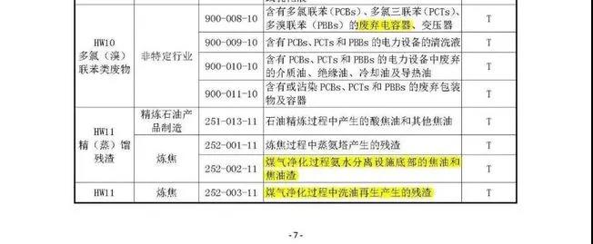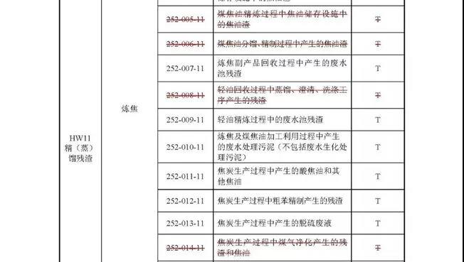 4.修改煤焦化相關(guān)危險(xiǎn)廢物的規(guī)定。針對(duì)該類廢物重點(diǎn)從兩個(gè)方面進(jìn)行修改:一是重新梳理并明確了煤焦化過程產(chǎn)生的各類危險(xiǎn)廢物及其工藝來源;二是根據(jù)不同煤焦油的利用途徑,在《危險(xiǎn)廢物豁免管理清單》中增加當(dāng)煤焦油用于生產(chǎn)煤基氫化油、碳素材料、炭黑時(shí),滿足一定條件利用過程可不按危險(xiǎn)廢物管理的規(guī)定。