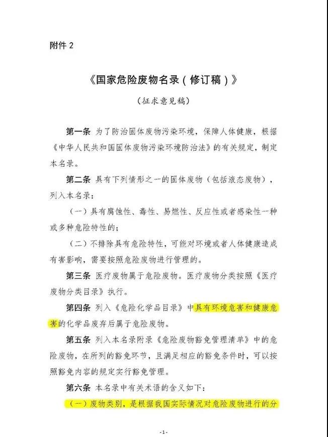 《國(guó)家危險(xiǎn)廢物名錄(修訂稿)》(二次征求意見稿)