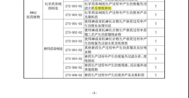 8.刪除為防治動(dòng)物傳染病而需要收集和處置的廢物。2016 年版《名錄》將“為防治動(dòng)物傳染病而需要收集和處置的廢物”列為900-001-01 類危險(xiǎn)廢物,而動(dòng)物防疫法明確要求該類廢物應(yīng)當(dāng)按照國(guó)務(wù)院獸醫(yī)主管部門的規(guī)定進(jìn)行無害化處理, 本次修訂將900-001-01 類危險(xiǎn)廢物刪除。
