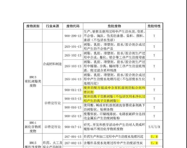 7.明確部分類別廢物的涵蓋范圍。2016 年版《名錄》中對(duì)樹脂、乳膠、增塑劑生產(chǎn)過程中產(chǎn)生的危險(xiǎn)廢物的界定不清晰,導(dǎo)致涵蓋范圍過大。實(shí)際調(diào)研發(fā)現(xiàn)不同來源的上述廢物危險(xiǎn)特性存在較大的差異。根據(jù)危險(xiǎn)特性調(diào)查結(jié)果,本次修訂將其中危險(xiǎn)特性較小、環(huán)境風(fēng)險(xiǎn)可控的廢物從《名錄》中刪除。