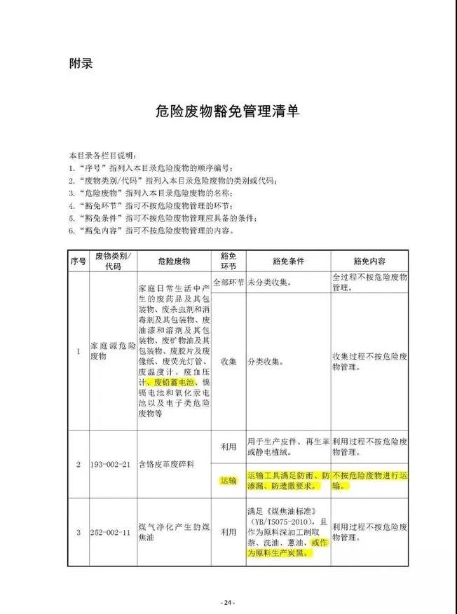 第四條列入本名錄附錄《危險(xiǎn)廢物豁免管理清單》中的危險(xiǎn)廢物,在所列的豁免環(huán)節(jié),且滿足相應(yīng)的豁免條件時(shí),可以按照豁免內(nèi)容的規(guī)定實(shí)行豁免管理。