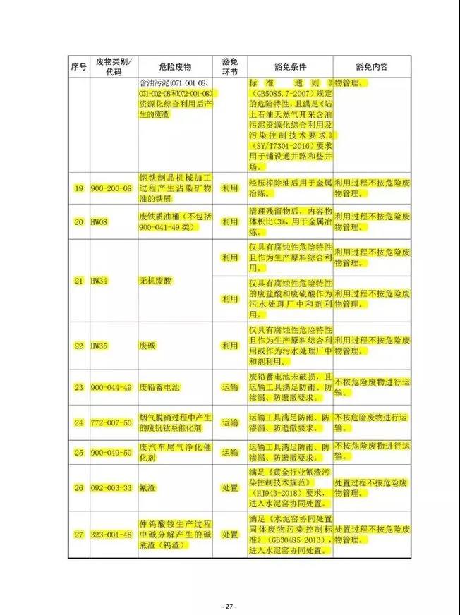 3.修訂了附錄《危險(xiǎn)廢物豁免管理清單》?!睹洠ㄐ抻喐澹罚ǘ握髑笠庖姼澹┑母戒浶略?4 種危險(xiǎn)廢物,共計(jì)30 種危險(xiǎn)廢物。
