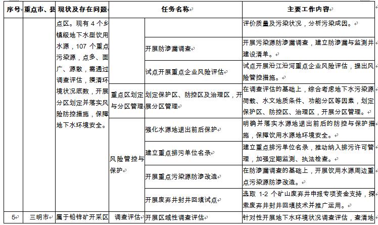 1.污染防治重點(diǎn)區(qū)劃定及分區(qū)管理試點(diǎn)。開展九市一區(qū)地下水污染防治重點(diǎn)區(qū)劃定工作。在龍巖新羅和連城、三明大田開展地下水環(huán)境分區(qū)管理試點(diǎn)。 2.重點(diǎn)污染源地下水污染風(fēng)險(xiǎn)管控與修復(fù)。實(shí)施重點(diǎn)污染源(化工園區(qū)、危險(xiǎn)廢物處置場和生活垃圾填埋場等)地下水污染風(fēng)險(xiǎn)管控,以省級以上化工園區(qū)為重點(diǎn)開展地下水污染風(fēng)險(xiǎn)管控。開展漳州古雷港開發(fā)區(qū)重點(diǎn)企業(yè)地下水污染風(fēng)險(xiǎn)管控與修復(fù)試點(diǎn)。 3.礦山廢棄井封井回填。探索廢棄井封井回填技術(shù),在三明市尤溪縣等礦山開采集中的區(qū)域開展廢棄井回填試點(diǎn)。 |
