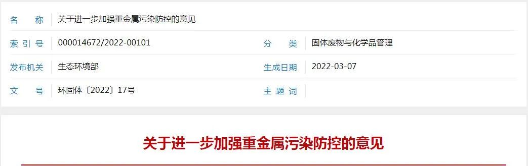 “十三五”時期,重金屬污染防控取得積極成效。同時應(yīng)該看到,一些地區(qū)重金屬污染問題仍然突出,威脅生態(tài)環(huán)境安全和人民群眾健康,重金屬污染防控任重道遠。根據(jù)《中共中央 國務(wù)院關(guān)于深入打好污染防治攻堅戰(zhàn)的意見》,為進一步強化重金屬污染物排放控制,有效防控涉重金屬環(huán)境風險,制定本意見。