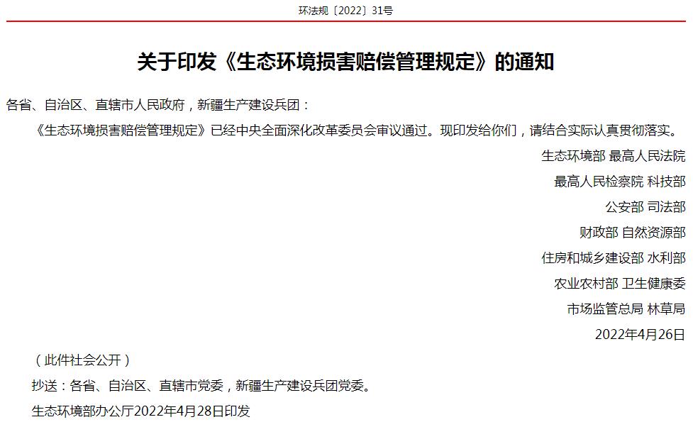 生態(tài)環(huán)境損害賠償管理規(guī)定