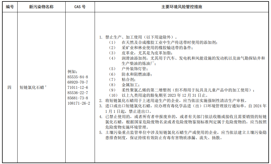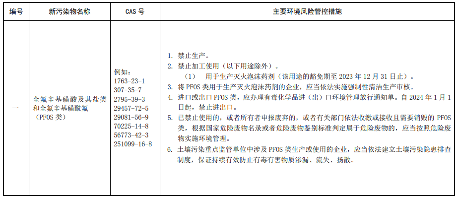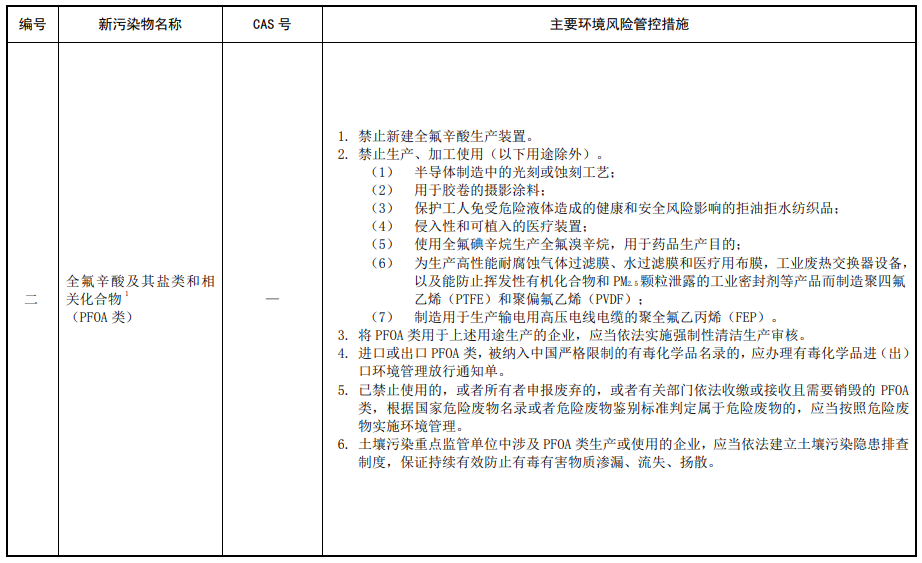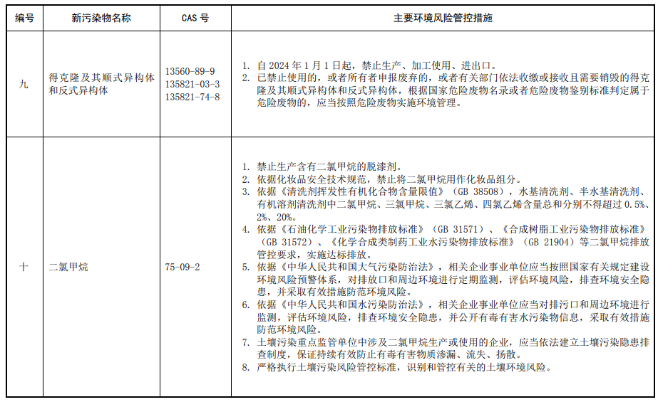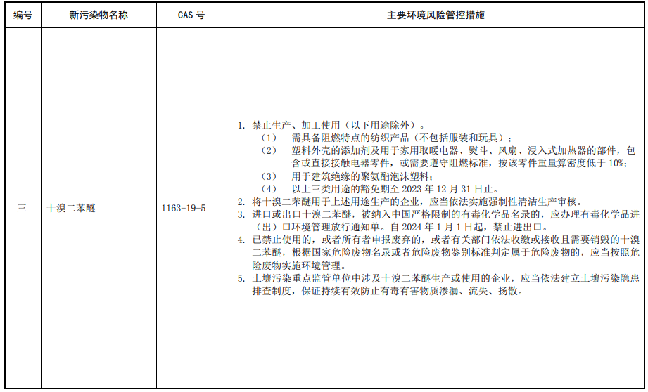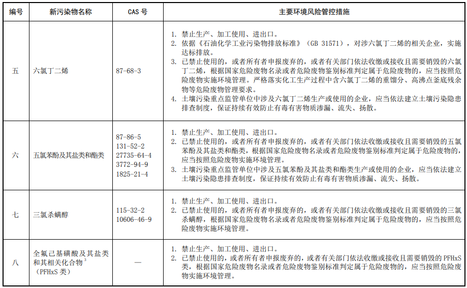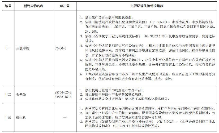 第三條 對列入本清單的新污染物,應(yīng)當按照國家有關(guān)規(guī)定采取禁止、限制、限排等環(huán)境風險管控措施。